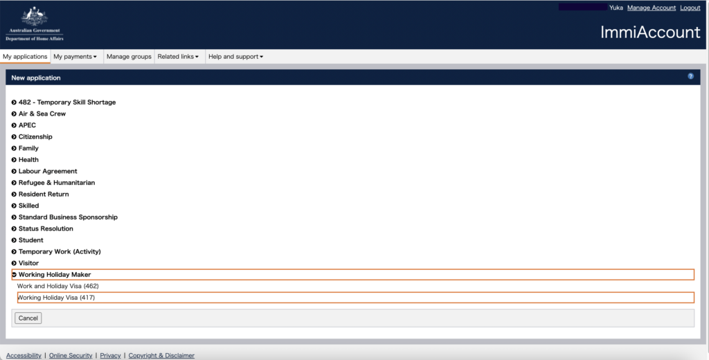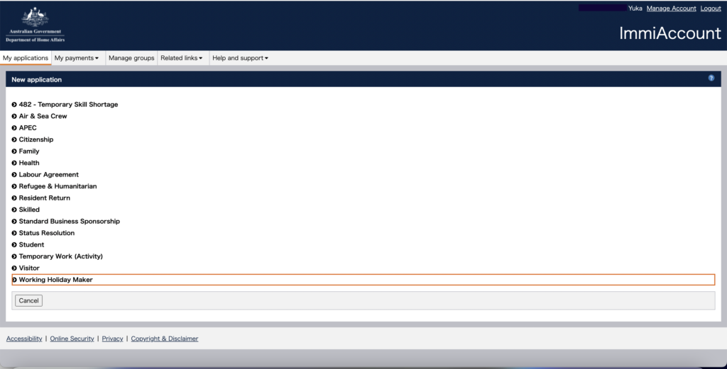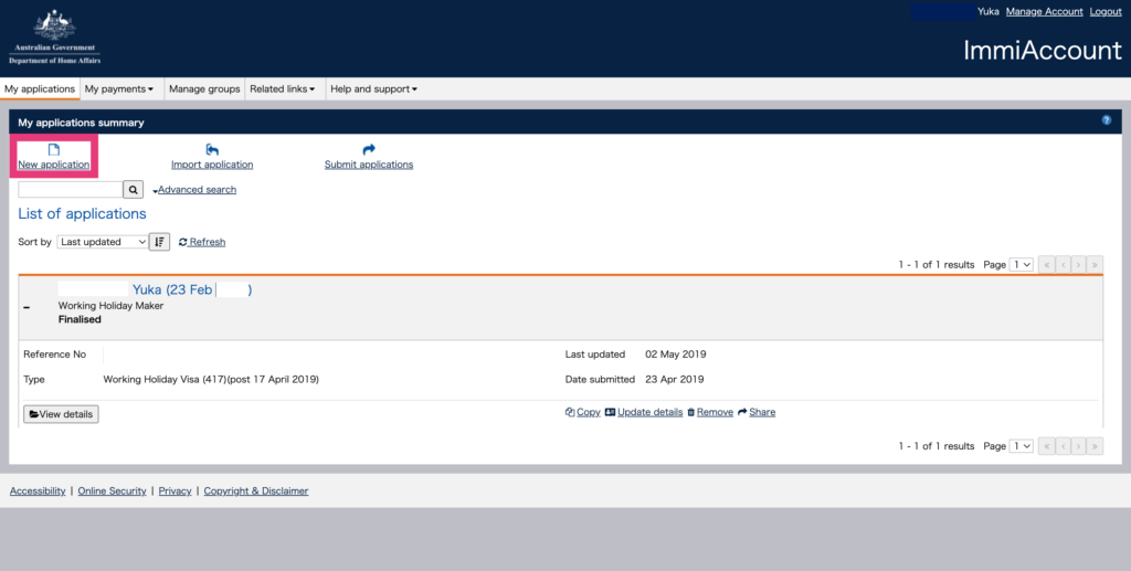 Immi Accountとは、ファーストワーホリビザ申請時にアカウント作成をしたサイトのことです。
