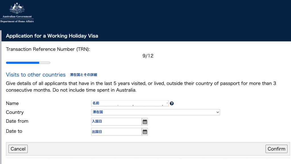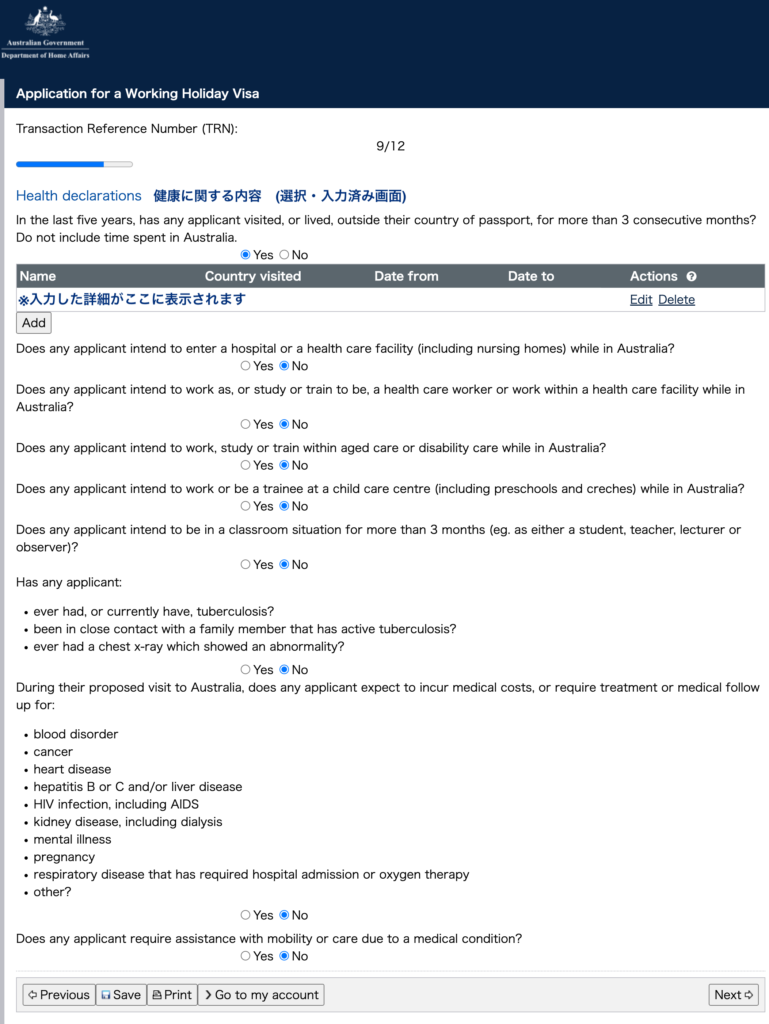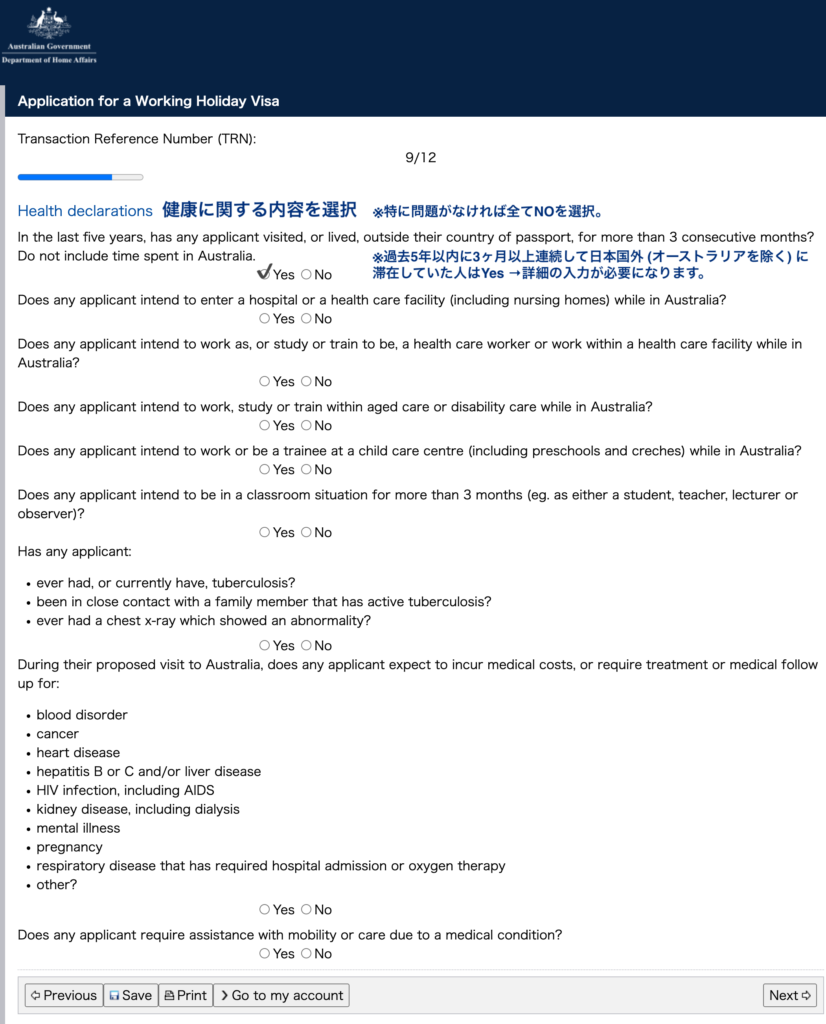 注意!過去5年以内に3ヶ月以上連続して日本国外 (オーストラリアを除く)に滞在していた人は詳細の入力が必要になります。