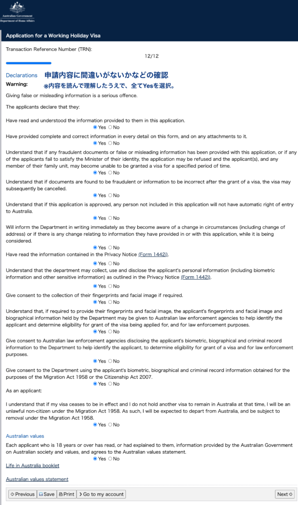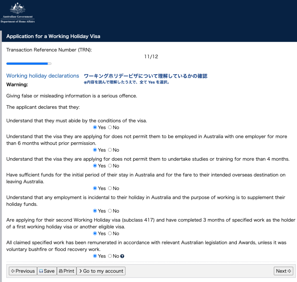 16. Working holiday declarations ワーキングホリデーについて理解しているかの確認