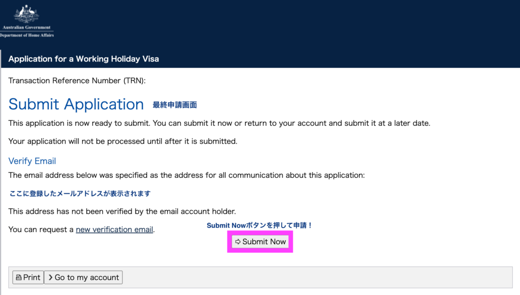 ここまで来たら、あとは Submit now ボタンを押して申請!