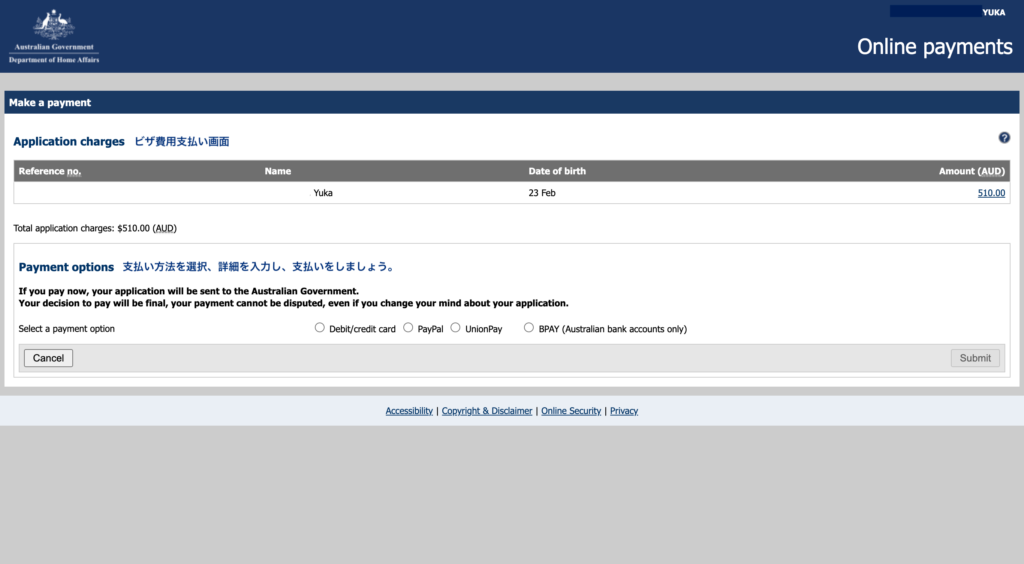 ※ただし、BPAYは処理に日数がかかることがあるようなので、申請に余裕がある場合に限りますね。。