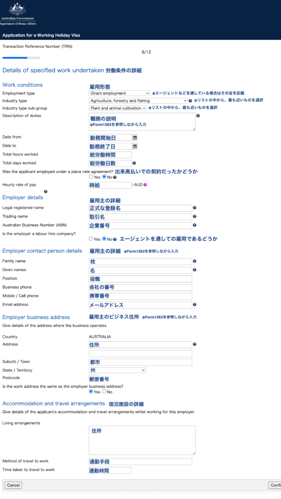 - 前回のワーホリ中に3ヶ月間特定の仕事に従事したかどうか