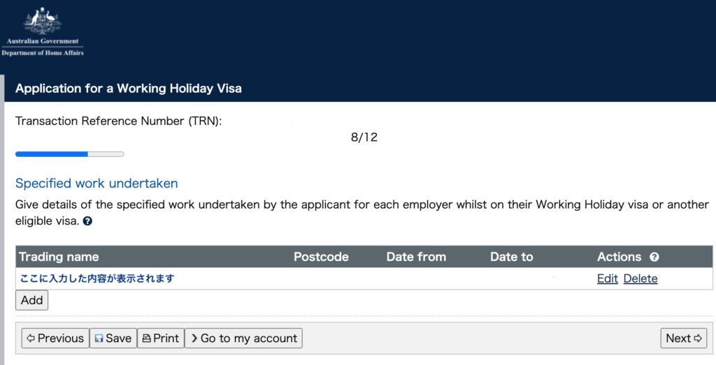 5. Working Holiday Visa(417)についての詳細確認画面